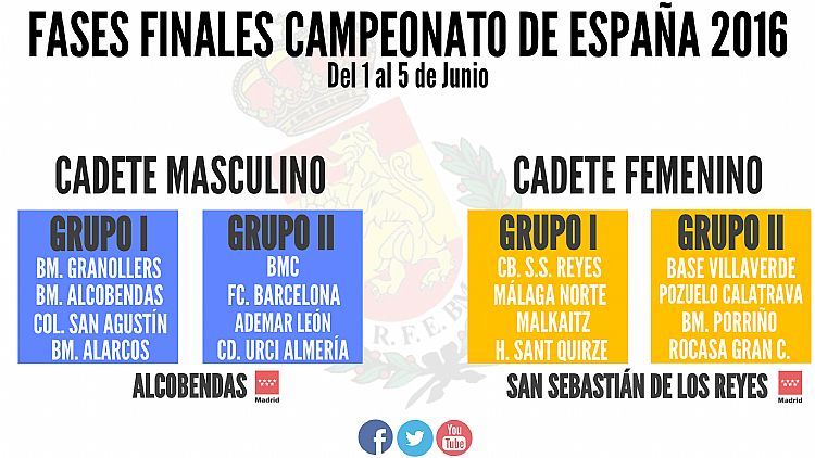 La sede de la Real Federación Española de Balonmano ha acogido en la tarde de hoy los sorteos de la Fase Final del Campeonato de España de categoría cadete, y lo hace dejando un acontecimiento histórico para el #BalonmanoMadrileño. La Comunidad de Madrid se convertirá en el epicentro del balonmano nacional entre el 1 y el 5 de Junio acogiendo ambas fases finales.