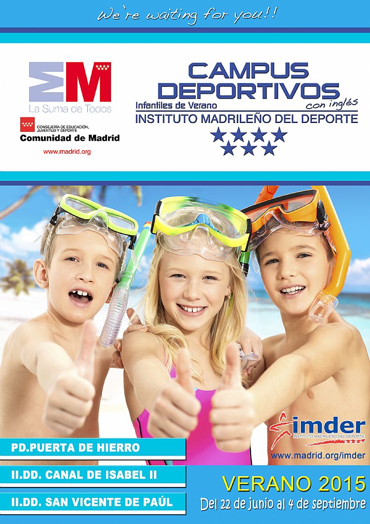 Un año más el Instituto Madrileño del Deporte presenta su programa de Campus Deportivos para la campaña de 2015. De esta forma el IMDER vuelve a ofrecer una amplia oferta deportiva, poniendo a disposición de los madrileños 2.995 plazas para niños y jóvenes en diferentes campus que se desarrollan durante el período estival, cubriendo así la práctica totalidad de vacaciones escolares.