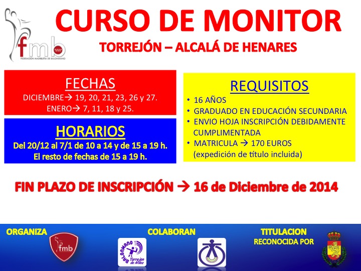 Se hace oficial la convocatoria del curso de Monitor (Nivel I) que realiza la Federación Madrileña de Balonmano con la colaboración del Club Deportivo Elemental BM. Torrejón y del Club Deportivo Iplacea.