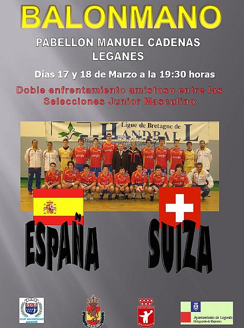 Los días 17 y 18 de Marzo tendrá lugar una doble confrontación entre las selecciones Junior Masculino de España y Suiza.Estos partidos serán a las 19.30 horas en el Pabellón Manuel Cadenas de Leganes.La entrada es Gratuita.