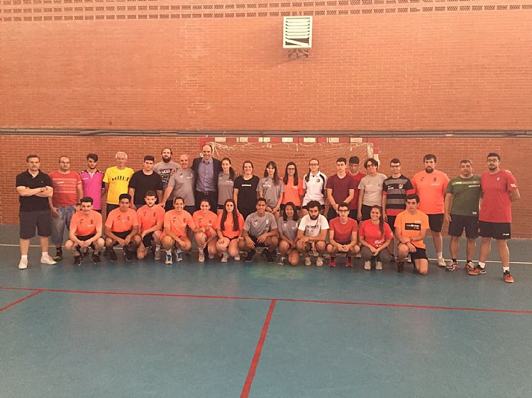 El presidente de la Federación Madrileña de Balonmano, José Javier Hombrados, acompaño a los 29 chicos y chicas que se están formando en el Curso de Monitor de Parla. En estas semanas aprenderán los principios de la iniciación en nuestro deporte.