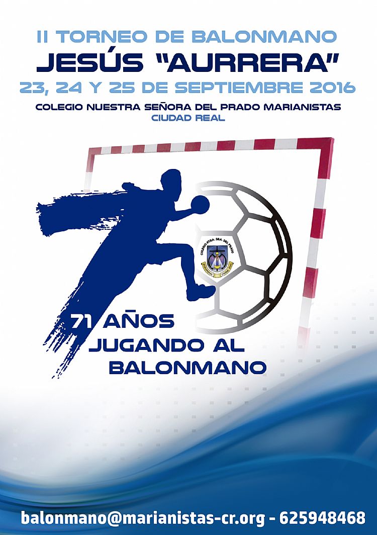 La sección de balonmano del AD. Prado Marianistas lanza la segunda edición del II TORNEO JESUS “AURRERA” de balonmano, que conmemora los 70+1 años de la práctica de nuestro deporte en su centro.