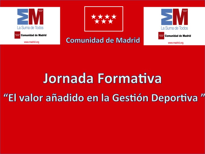 La Dirección General de Deportes presenta, el Miércoles 23 de Octubre a las 10 de la mañana, la jornada formativa de: “El Valor añadido en la Gestión Deportiva” que se celebrará en las instalaciones de Espacio 2014, en la Avenida Olímpica 22 del municipio de Alcobendas.