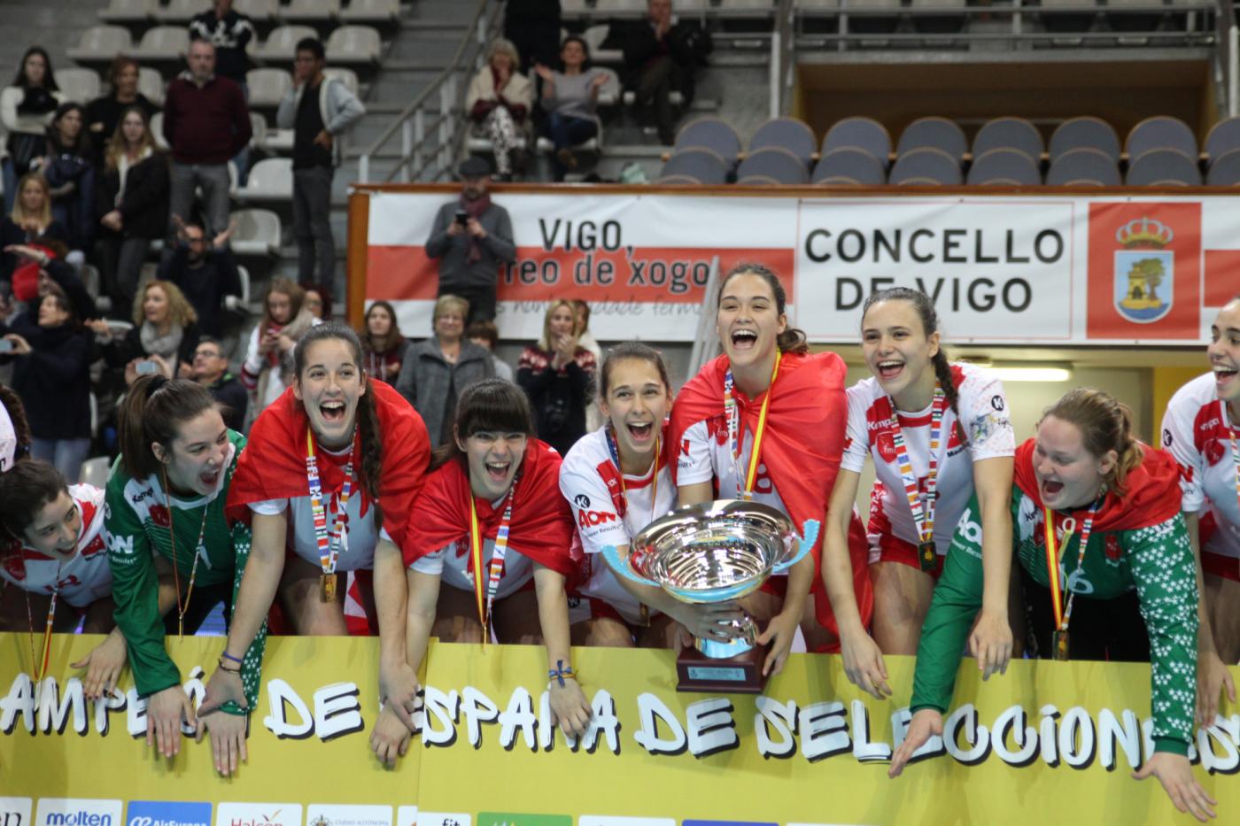 La Selección Madrileña de Balonmano Juvenil Femenino ha conseguido, por segunda vez consecutiva, el Oro en el Campeonato de España frente a la Selección Catalana (34-17). El equipo se ha impuesto con autoridad en la final disputada en el Pabellón As Travesas de Vigo, en Galicia, donde se ha celebrado esta semana el Campeonato de España de Selecciones Territoriales.