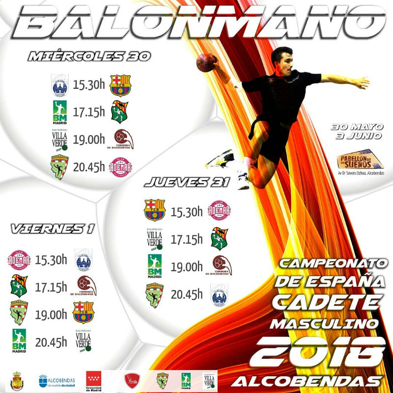 El Pabellón de los Sueños de Alcobendas acogerá desde hoy y hasta el domingo la Fase Final del Campeonato de España Cadete Masculino, con la Academia BM Alcobendas, Ikasa BM Madrid y Base Villaverde como anfitriones.